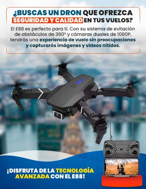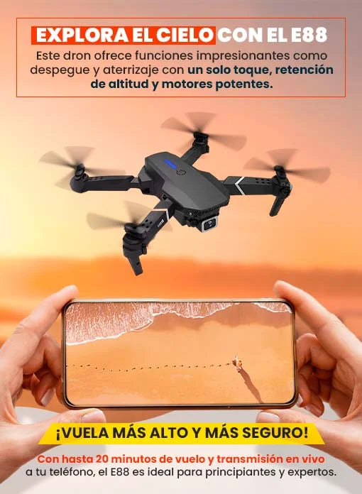 Sí, el E88 está diseñado tanto para principiantes como para expertos. Cuenta con funciones como despegue y aterrizaje automático, estabilización de vuelo y sensores de obstáculos que facilitan su manejo.