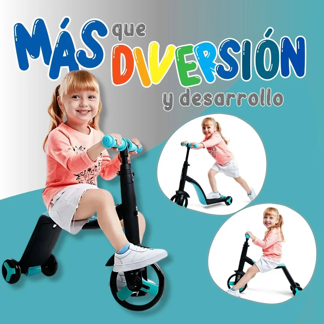 🛴 Multifuncional : Se convierte en triciclo, patineta y monopatín.