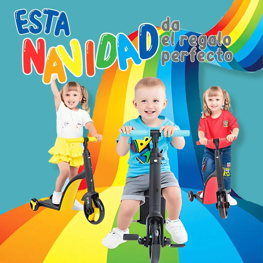 Un triciclo, patineta y monopatín en un solo producto diseñado para adaptarse al crecimiento y desarrollo de tu hijo.