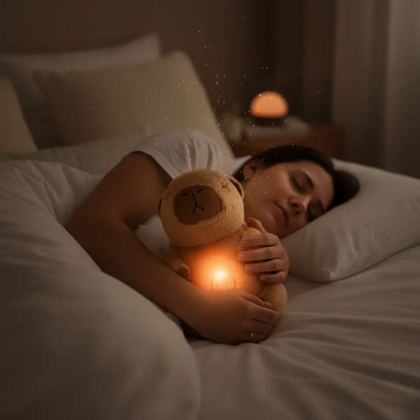 En un mundo que nunca se detiene, este Capibara es tu pausa personal. No es solo un peluche, es un ancla para ayudarte a volver a tu centro cuando el estrés o la ansiedad intentan tomar el control. Su magia es simple: un ritmo de respiración suave que calma tu sistema nervioso y un abrazo silencioso que te recuerda que todo va a estar bien, sin necesidad de palabras.